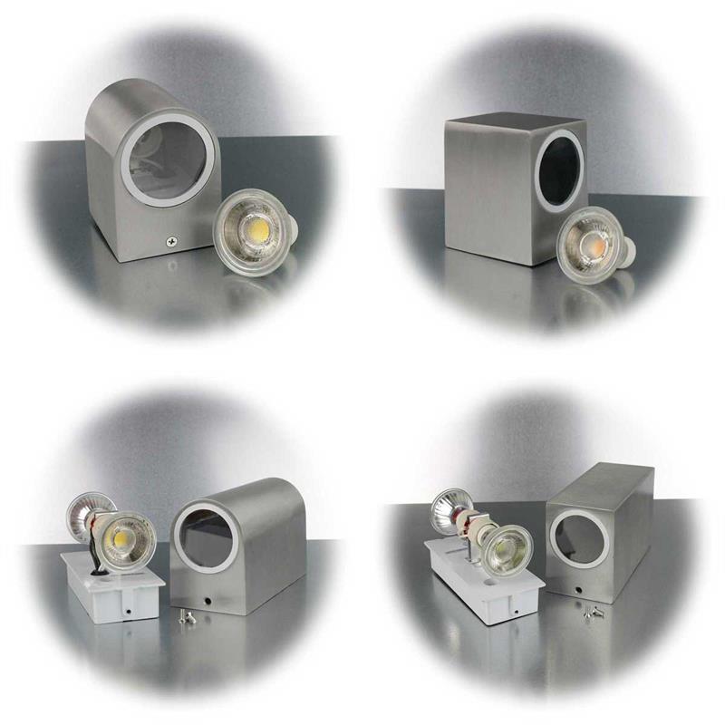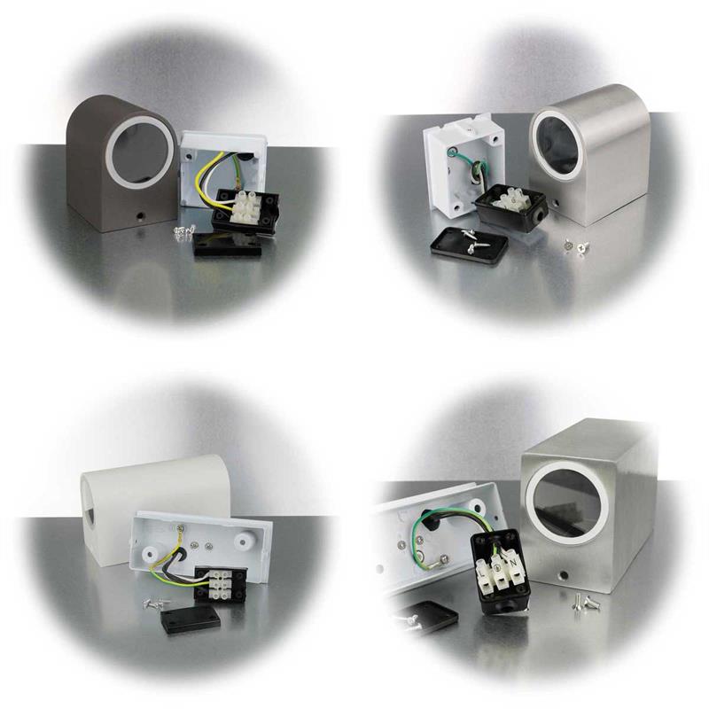 Die Leuchte ist in verschiedenen Varianten verfügbar: wahlweise mit 1 oder 2 GU10 COB LEDs, jeweils mit 3W oder 5W Leistung, in den Leuchtfarben warmweiß für gemütliche Akzente oder daylight für klare, helle Ausleuchtung. Durch die austauschbaren GU10 Leuchtmittel lässt sich die Lichtfarbe flexibel anpassen, ohne die Leuchte austauschen zu müssen. Ergänzend können weitere Typen der Serie kombiniert werden, um individuelle Beleuchtungskonzepte zu realisieren und gleichzeitig Energie zu sparen. Typische Anwendungsbereiche sind die Beleuchtung von Hauseingängen, Garagenzufahrten oder Wegen, dekorative Akzentbeleuchtung an Fassaden und Mauern sowie die effektvolle Ausleuchtung von Terrassen und Balkonen. Die LED Wand-Außenleuchte überzeugt durch ihre Energieeffizienz, lange Lebensdauer und die Möglichkeit, Licht gezielt zu lenken, wodurch sie moderne Architektur stilsicher in Szene setzt.