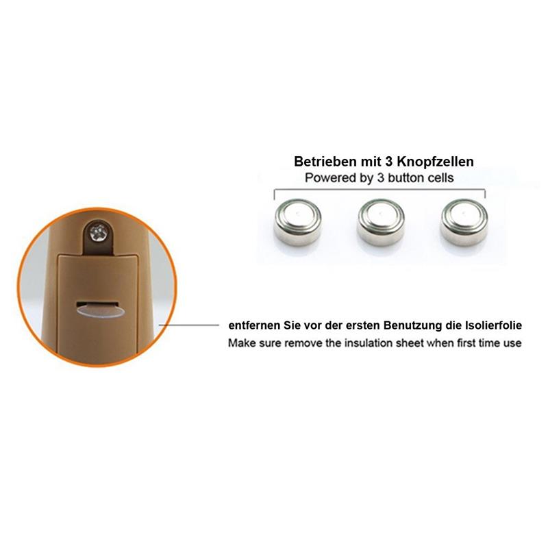- Stromversorgung: 3x AG13 Knopfzelle (im Lieferumfang)