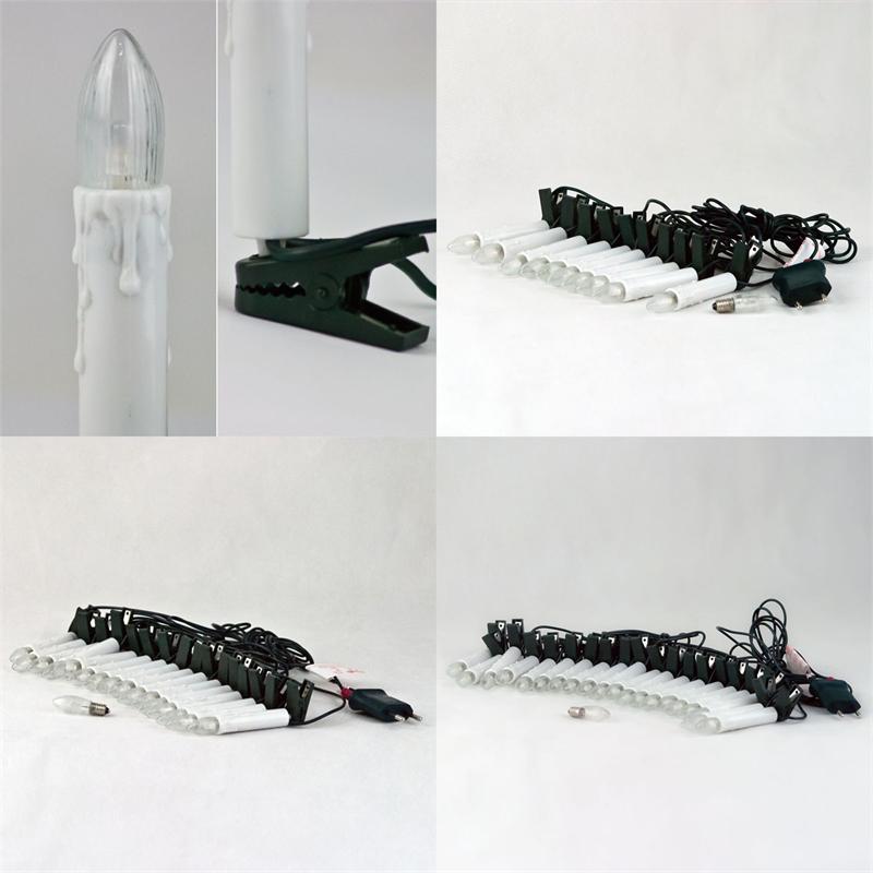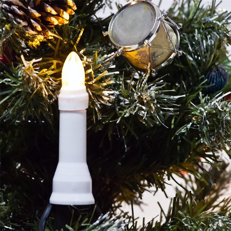 Weihnachtsbaum Lichterkette mit warmweiß leuchtenden LED Kerzen im Tropfendesign, E10 Fassung, flexible Befestigungsklemmen, für Innen- oder Außenbereich