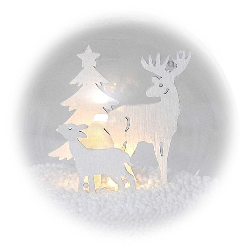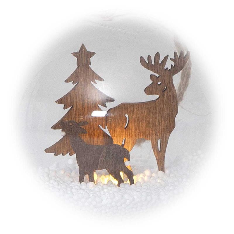 LED Deko-Kugel/Baumkugel "Fauna" - Hirsch/Tanne - warmweiße LED - Ø 8cm - Batteriebetrieb - verschiedene Farben