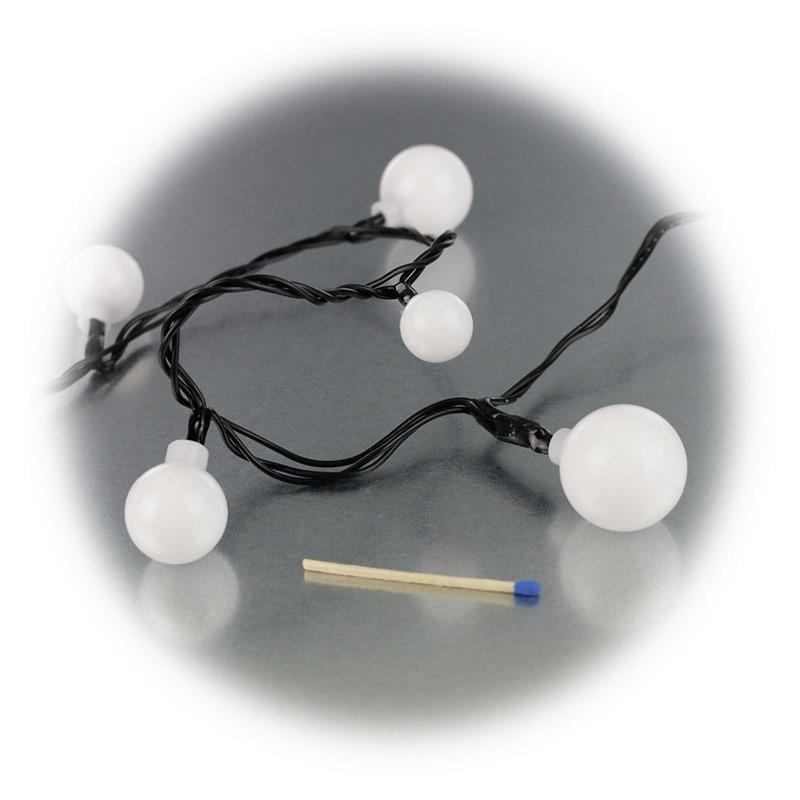 Die warmweiße Lichtfarbe erzeugt eine gemütliche Atmosphäre, ob als stilvolle Tischdekoration bei Sommerfesten, als stimmungsvolle Beleuchtung an Gartenzaun oder Geländer oder als winterliches Highlight zwischen Pflanzen und Sträuchern. Auch in Wohnräumen kommt die LED Kugellichterkette hervorragend zur Geltung – beispielsweise entlang eines Wandregals oder um Spiegel und Fensterrahmen. In Kombination mit einer Zeitschaltuhr lässt sich die Beleuchtung bequem und energiesparend steuern. So sorgt die Lichterkette täglich zur gewünschten Zeit für sanftes Licht und behagliche Stimmung. Ihr klares Design und die hochwertige Verarbeitung machen sie zum idealen Begleiter für stimmungsvolle Lichtmomente das ganze Jahr über.
