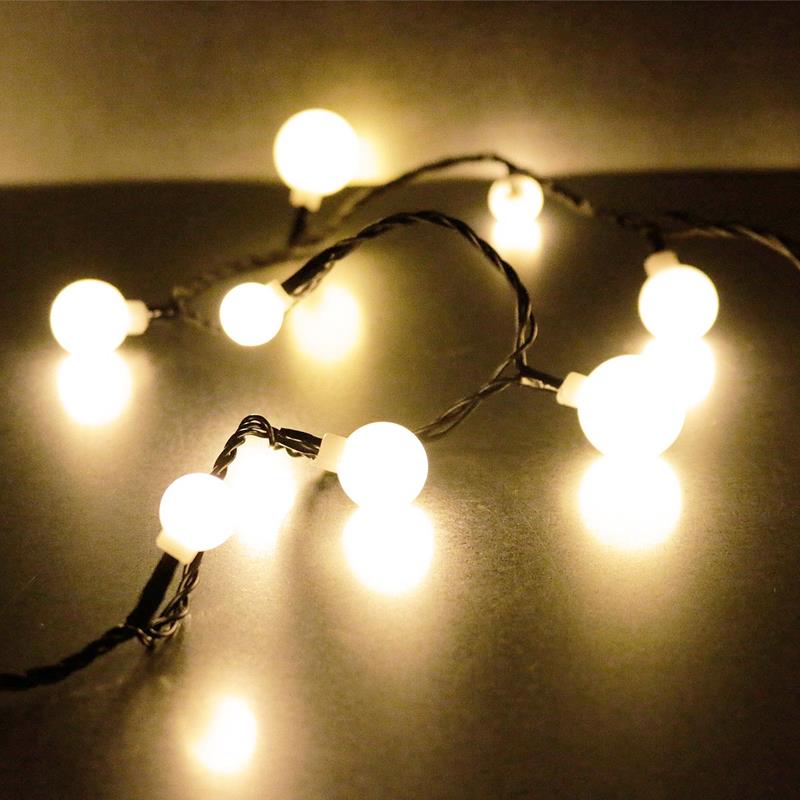 Die LED Lichterkette mit Kugeln sorgt mit ihrem warmweißen Licht für eine stimmungsvolle Beleuchtung zu jeder Jahreszeit. Drei unterschiedlich große Kugeln (Ø 15mm, 20mm und 25mm) schaffen ein lebendiges Lichtspiel und setzen dekorative Akzente in Innen- und Außenbereichen. Das schwarze Kabel unterstreicht den eleganten Charakter und lässt das warme Licht besonders zur Geltung kommen. Erhältlich ist die Lichterkette mit 40 oder 120 LEDs, wahlweise mit einer beleuchteten Länge von 3 oder 9 Metern. Sie wird direkt an 230V angeschlossen und verfügt über ein 24V DC Netzteil. Dank der Schutzklasse IP44 ist sie wetterfest und somit ideal für den Einsatz im Freien – etwa auf Balkon, Terrasse oder im Garten.