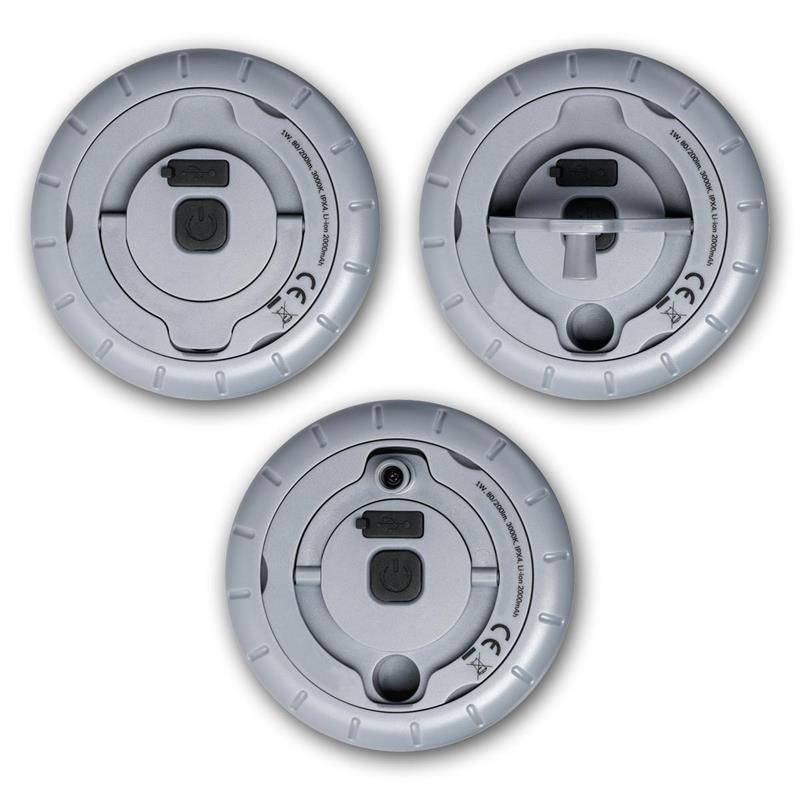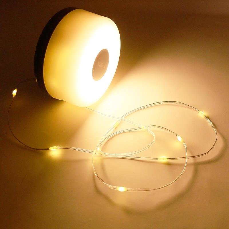 runde LED Akku Campinglampe mit integrierter 8m LED Lichterkette, verschiedene Lichteffekte, aufladen per USB-C, Leuchtfarbe warmweiß