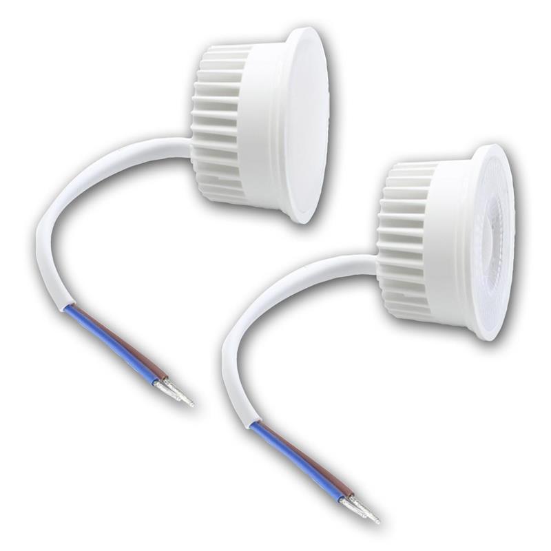 Auch bei der Lichtverteilung stehen zwei gezielt abgestimmte Varianten zur Verfügung. Die Ausführung mit 60° Abstrahlwinkel und transparenter Abdeckung erzeugt eine fokussierte, punktuelle Ausleuchtung. Sie eignet sich ideal zur Akzentbeleuchtung, zum Hervorheben einzelner Bereiche oder zur gezielten Lichtführung innerhalb eines Raumes. Die Variante mit 110° Abstrahlwinkel und opaler, milchiger Abdeckung sorgt hingegen für eine breite und gleichmäßige Lichtstreuung. Sie schafft eine angenehme Grundbeleuchtung und verteilt das Licht weich im Raum, ohne harte Schatten zu erzeugen. Beide Varianten bieten durch den Einsatz hochwertiger LEDs ein flimmerfreies Lichtbild und hohen visuellen Komfort. Die LED Einbauleuchte wird über einen 230V Anschluss mit losen Kabelenden betrieben und lässt sich dadurch flexibel in verschiedenste Leuchten integrieren, darunter Deckenstrahler, Wandleuchten, Deckenleuchten oder Bodenleuchten. Diese Vielseitigkeit ermöglicht eine einfache Umsetzung unterschiedlichster Beleuchtungskonzepte im privaten wie auch im gewerblichen Bereich. Zusätzliche Flexibilität bietet die Auswahl an verschiedenen Setgrößen. Das Modul ist sowohl als Einzelstück für gezielte Anwendungen als auch im 3er Set für kleinere Installationen erhältlich. Das 5er Set eignet sich ideal für mittelgroße Projekte oder die Ausstattung mehrerer Lichtpunkte innerhalb eines Raumes. Für umfangreichere Vorhaben oder einheitliche Beleuchtungskonzepte steht zudem eine 10er Packung zur Verfügung, die eine besonders effiziente und wirtschaftliche Lösung darstellt. Das LED Modul „Piatto CCT 5“ steht für eine durchdachte Kombination aus kompakter Bauform, moderner Lichtsteuerung und vielseitigen Einsatzmöglichkeiten und erfüllt damit die Anforderungen zeitgemäßer Beleuchtungslösungen.