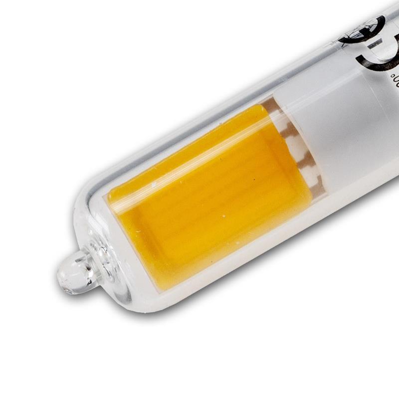 Das G9 LED Leuchtmittel mit 500 Lumen und einer Leistung von 4 Watt ist die ideale Alternative zu herkömmlichen Halogenlampen. Es arbeitet mit 230V Spannung und bietet eine hohe Energieeffizienz bei gleichzeitig langer Lebensdauer. Durch den hochwertigen Glaskorpus wirkt das Leuchtmittel nicht nur elegant, sondern sorgt auch für eine besonders gleichmäßige Lichtverteilung. Die warmweiße Lichtfarbe mit einer Farbtemperatur von etwa 3000K erzeugt ein angenehmes, leicht gelbliches Licht, das der klassischen Glühlampe ähnelt. Dadurch entsteht eine gemütliche Atmosphäre, die ideal für Wohnräume, Schlafzimmer, Hotels oder Restaurants ist. Warmweißes Licht wird oft als entspannend und wohnlich empfunden und eignet sich hervorragend für Orte, an denen eine behagliche Stimmung gewünscht ist.