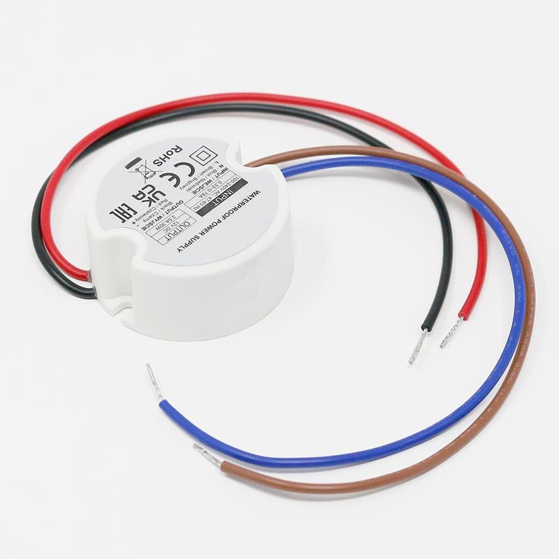 12V LED Transformator, Ausgangsleistung 0-30W, geeignet für Unterputz-Dosen Ø50mm, mit Anschlusskabel 20cm, lose Kabelenden