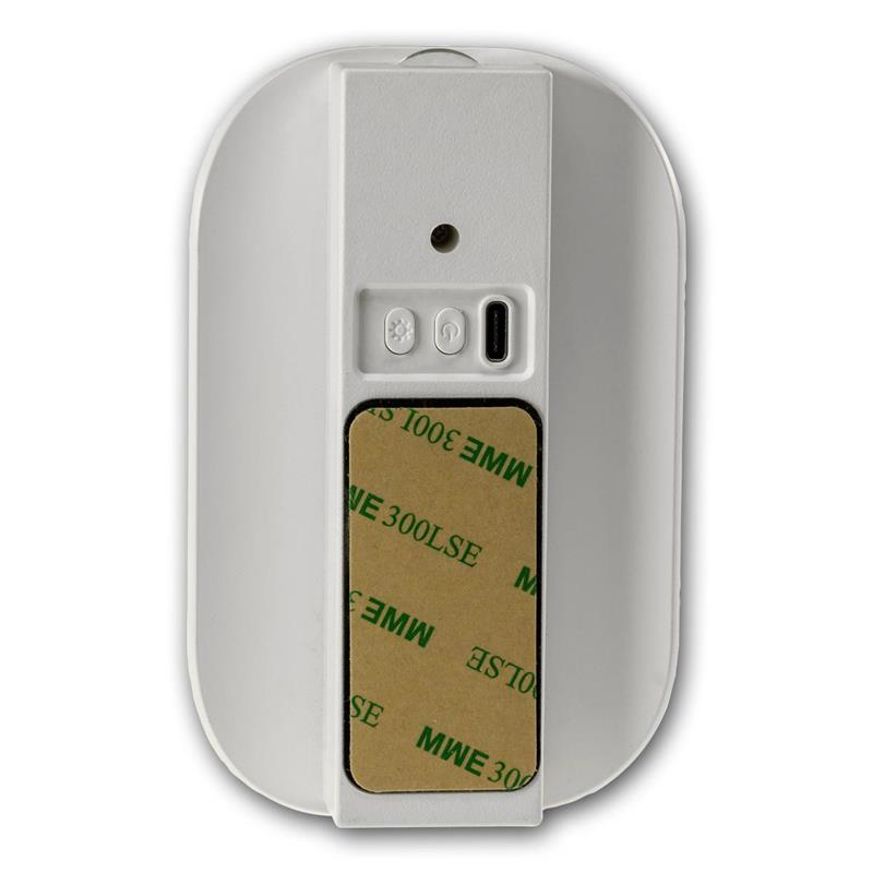 Ein besonderes Highlight ist die Abstrahlung nach oben und unten, die für eine gleichmäßige, angenehme Raumbeleuchtung sorgt und Ecken sowie Treppenstufen optimal ausleuchtet. Der integrierte Li-Ion Akku (3,7V / 500mAh) liefert bis zu 20 Stunden Lichtbetrieb bzw. rund 200 Schaltungen und lässt sich unkompliziert über USB-C aufladen. Eine rote LED zeigt den Ladezustand an; bei vollem Akku erlischt die Anzeige automatisch. Die kabellose Bauweise macht die Lampe besonders flexibel – sie kann überall eingesetzt werden, ohne dass eine Steckdose in der Nähe sein muss. Die Montage ist denkbar einfach: mit Magnethalterung und Klebepad lässt sich die Lampe ohne Bohren an Wänden, Regalen oder Treppenaufgängen befestigen und bei Bedarf ebenso leicht abnehmen, etwa zum Aufladen oder zum Standortwechsel. Dank der Kombination aus bewegungsgesteuertem Sensorlicht, wählbarer Lichtfarbe, stufenlos dimmbarer Helligkeit, Abstrahlung nach oben und unten sowie kabellosem Betrieb ist die LED Akku Wandleuchte "CT-WLA" die perfekte Lösung für Orientierung, Sicherheit und angenehmes, flexibles Licht in jedem Innenraum.