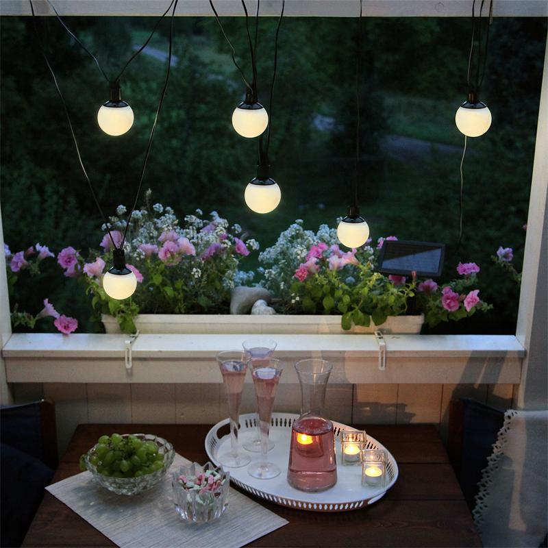 Dank der flexiblen Länge von 7 Metern und einem Abstand von 1 Meter zwischen den einzelnen Bällen lässt sich die Solar-Lichterkette vielseitig einsetzen. Hängen Sie sie über Geländer, Pflanzen oder Pergolen, oder stecken Sie sie mit dem mitgelieferten Erdspieß sicher in den Boden, um Wege, Blumenbeete oder Beeteinfassungen stimmungsvoll zu beleuchten. Die LED Solar-Lichterkette „6 Bälle“ eignet sich ideal für viele Anwendungsbereiche: als romantische Beleuchtung bei Gartenpartys, als atmosphärisches Licht für laue Sommerabende, als stimmungsvolle Dekoration für Hochzeiten oder als Highlight in Ihrem Außenbereich zur Weihnachtszeit. Die wetterfeste Ausführung mit Schutzklasse IP44 sorgt dafür, dass die Lichterkette auch bei Regen zuverlässig funktioniert. Für eine optimale Lichtleistung platzieren Sie das Solarpanel an einem sonnigen Standort ohne Schatten durch Bäume oder Dachvorsprünge. So genießen Sie die volle Leuchtkraft Ihrer Solar-Lichterkette bereits ab der ersten Dämmerung.