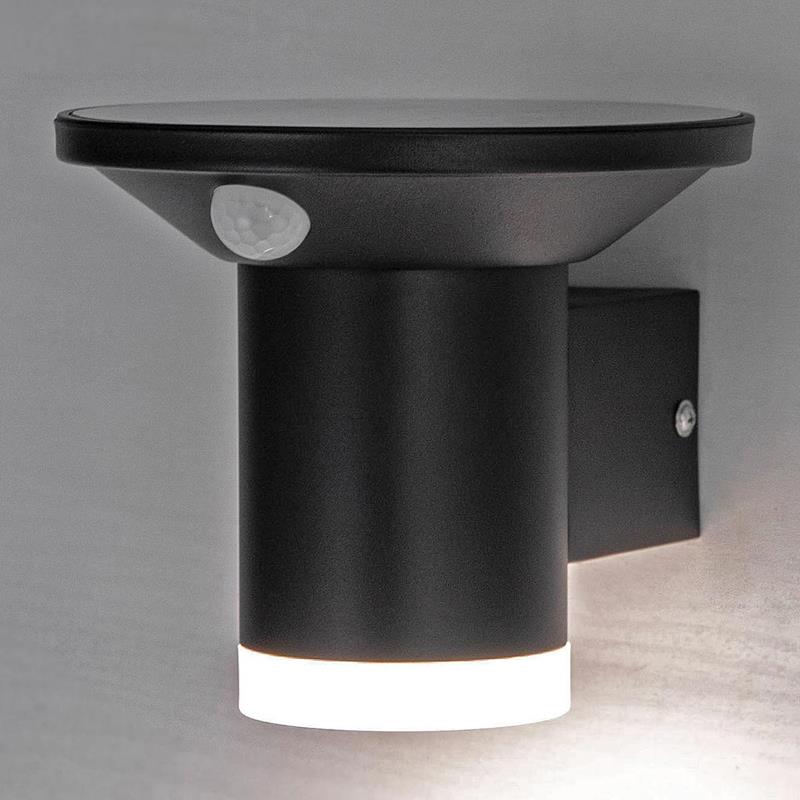 Solar Wandleuchte aus Edelstahl & Kunststoff, Farbe anthrazit, 90° PIR Bewegungsmelder mit Dämmerungssensor, für Außenbereiche