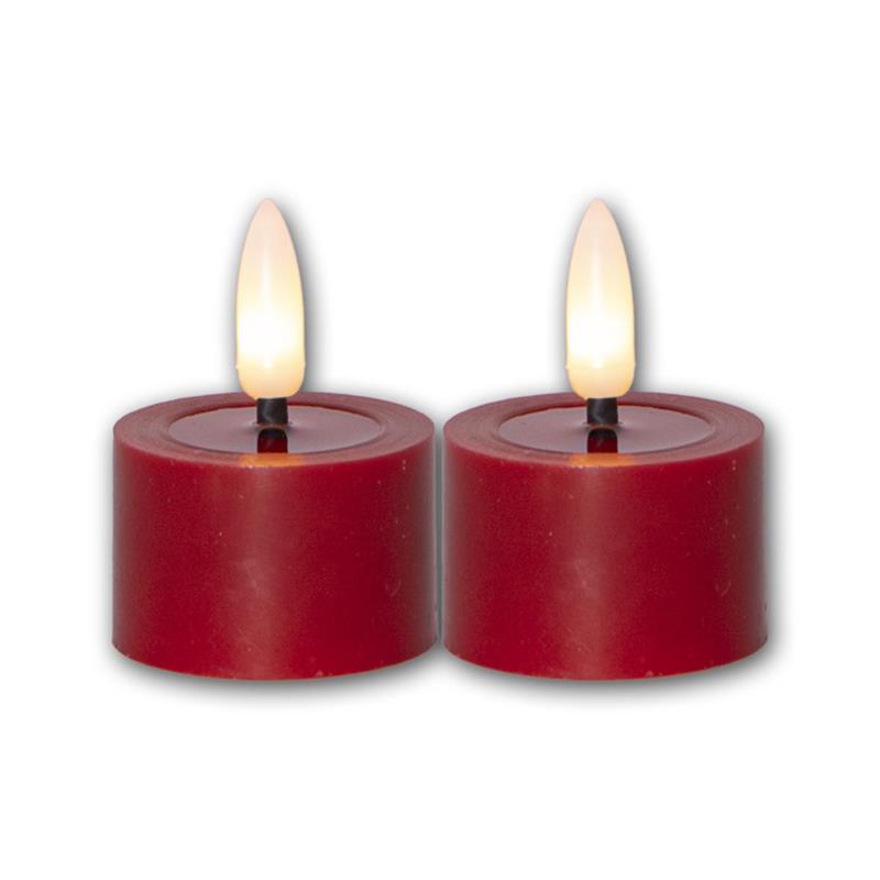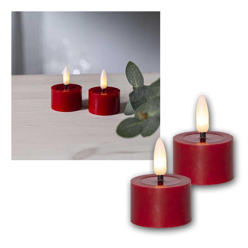 - 2x LED Teelicht "FLAMME FLOW M" mit Timer, Höhe 5cm, Durchmesser 4cm, rot