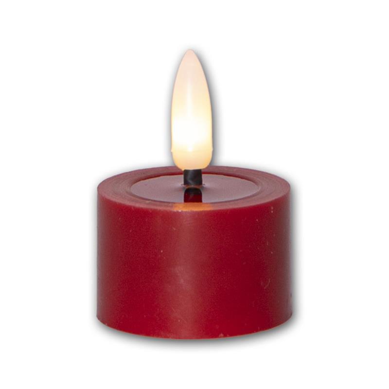 LED Teelicht mit natürliche wirkender Flamme (Flackereffekt), Echtwachs, glänzende Oberfläche, Höhe 5cm, Durchmesser 4cm, Batteriebetrieb, Timerfunktion, 2er Set, rot
