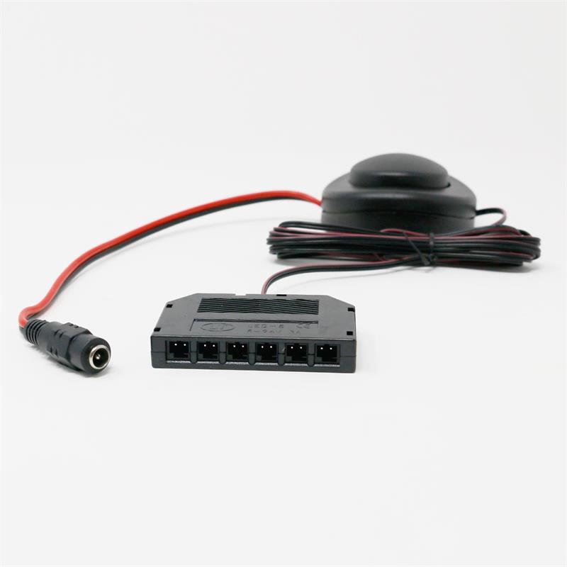 DC Anschlusskabel mit Fußschalter und 6-fach LED Verteiler, Ausgangsspannung 6-24V DC, DC-Buchse 5,5x2,1mm