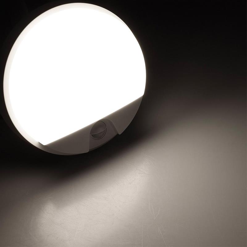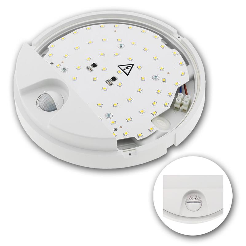 Das stabile Gehäuse besteht aus robustem Kunststoff mit integrierter Gummidichtung und ist nach IP54 gegen Spritzwasser und Staub geschützt. Dadurch eignet sich die Wandleuchte sowohl für geschützte Außenbereiche als auch für Innenräume. Ein Abdeckrahmen unterstreicht die moderne Optik und erhöht gleichzeitig die Stabilität der Konstruktion. Der geschützte Kabelanschluss mit Gummiring verhindert das Eindringen von Feuchtigkeit und unterstützt eine sichere Installation. Dank des direkten 230V Anschlusses lässt sich die Leuchte unkompliziert montieren, ohne zusätzliche Vorschaltgeräte oder Transformatoren. Im Alltag eröffnet die Wandleuchte zahlreiche praktische Einsatzmöglichkeiten. Im Eingangsbereich sorgt sie dafür, dass sich das Licht automatisch einschaltet, sobald sich jemand der Haustür nähert. Das erleichtert das Aufschließen bei Dunkelheit und schafft gleichzeitig ein einladendes Erscheinungsbild. An der Hausfassade oder in der Einfahrt verbessert die Beleuchtung die Orientierung und erhöht die Sicherheit rund um das Gebäude. Auf Balkon oder Terrasse entsteht eine zuverlässige Lichtquelle für den Aufenthalt im Freien am Abend. Auch entlang von Gartenwegen oder am Zugang zu Nebengebäuden, Garagen oder Gartenhäusern sorgt der Bewegungssensor für automatisch aktiviertes Licht. Wege werden klar sichtbar, sobald sich Personen nähern, wodurch Stolperstellen schneller erkannt werden können. Ebenso eignet sich die Leuchte hervorragend zur Beleuchtung von Hausnummern oder Zugangswegen. Im Innenbereich zeigt sie ihre Stärken besonders in Treppenhäusern, Fluren und Durchgängen. Sobald eine Etage betreten wird, aktiviert der Sensor das Licht automatisch und ermöglicht eine sichere Orientierung ohne Betätigung eines Schalters. In Kellerräumen, Hauswirtschaftsräumen oder Abstellbereichen erleichtert die automatische Beleuchtung den Zugang – insbesondere dann, wenn beide Hände bereits belegt sind. Auch in längeren Fluren oder Nebenräumen sorgt das neutralweiße Licht für klare Sicht und ein angenehmes Raumgefühl. Für eine optimale Sensorfunktion wird eine Montagehöhe von etwa 1,5 bis 2 Metern empfohlen. In dieser Position kann der Bewegungsmelder Personen zuverlässig erkennen und gleichzeitig den gewünschten Bereich effizient ausleuchten. Die integrierte LED Technologie überzeugt zudem durch eine lange Lebensdauer und wartungsarmen Betrieb, wodurch die Leuchte über viele Jahre hinweg zuverlässig für automatisches Licht sorgt.