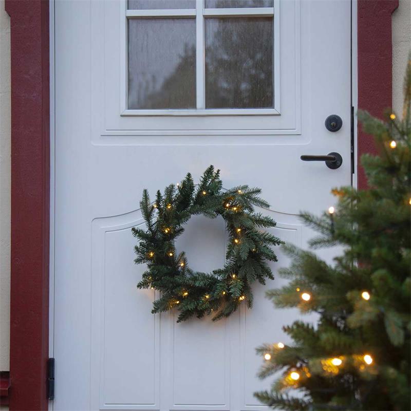 Motiv: Tannenkranz, Farbe: grün, Durchmesser: 45cm, Batteriebetrieb, mit Dämmerungssensor, für Innen und Außen