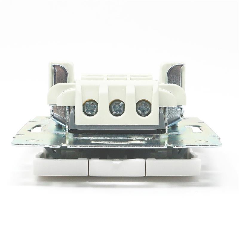 Schalter mit 3 Wippen, ohne Rahmen, geeignet für Einfach- und Mehrfachrahmen, Einbau in Wanddosen mit Ø 60mm, Schraubklemmen