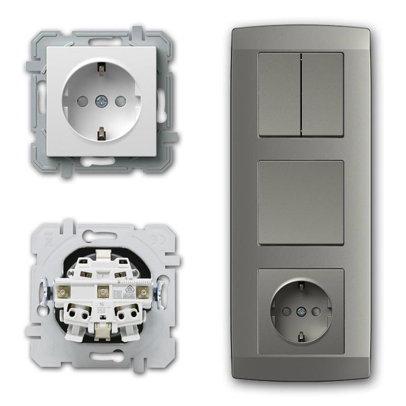 Das LOGIQ-Schalterprogramm besticht durch modernes Design, einfache Kombinierbarkeit und stilvolle Farben. Die Mehrfachrahmen lassen sich sowohl horizontal als auch vertikal montieren, wodurch individuelle Kombinationen für jeden Raum möglich sind. Die Produkte bestehen aus hochwertigem Kunststoff in den Farben weiß, titan und anthrazit, passend zu vielen Einrichtungsstilen. Sie sind für einen Betrieb bei 230V/50Hz ausgelegt, und die Steckdosen verfügen über einen Einsteckschutz. Die Netzwerkdosen sind vollgeschirmt, mit vorderen Anschlüssen für zwei CAT 6s RJ45 8/8 Buchsen und werkzeugfreien Klemmleisten auf der Rückseite. Die Antennendosen unterstützen eine Übertragungsbandbreite von 5-2400 MHz und eignen sich für Radio, TV und Sat. Alle Elemente sind zur Unterputzmontage geeignet und passen in Hohlwand- und Unterputzschalterdosen. Der Kabelanschluss erfolgt per Steckklemmen für Kabel mit einem Querschnitt von 1,5-2,5mm². Das Set entspricht der Schutzklasse IP20.