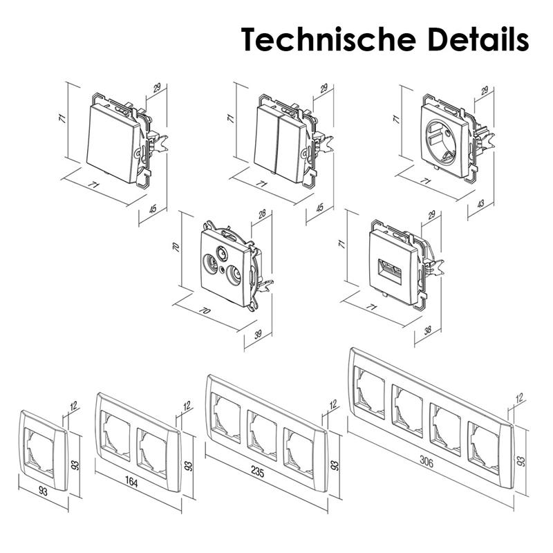 - Maße 2-fach Rahmen: ca. 164x93x12mm (BxHxT)