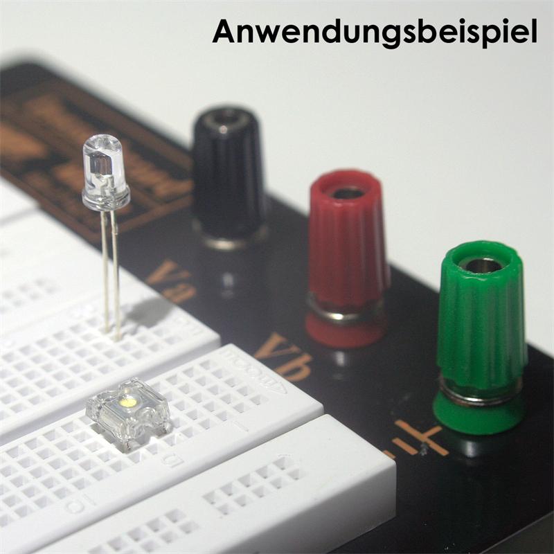 Es ist kein Löten notwendig und die Schaltungen können durch Umstecken einfach geändert werden.