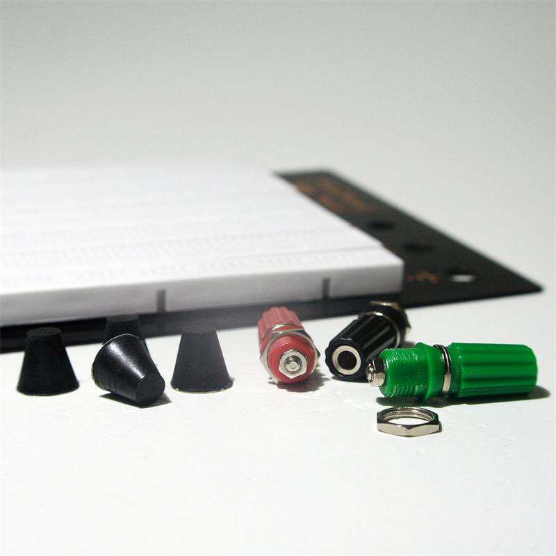 Experimentier-Board, Bodenplatte aus Aluminium mit selbstklebenden Gummifüßen, 3 Pol-Anschlussklemmen