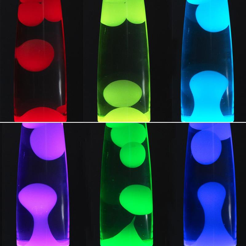 Lavalampe mit RGB Farbwechsel + 6 Einzelfarben, Wachsbewegungseffekt durch natürliche Wärmezirkulation, Fuß & Kappe schwarz