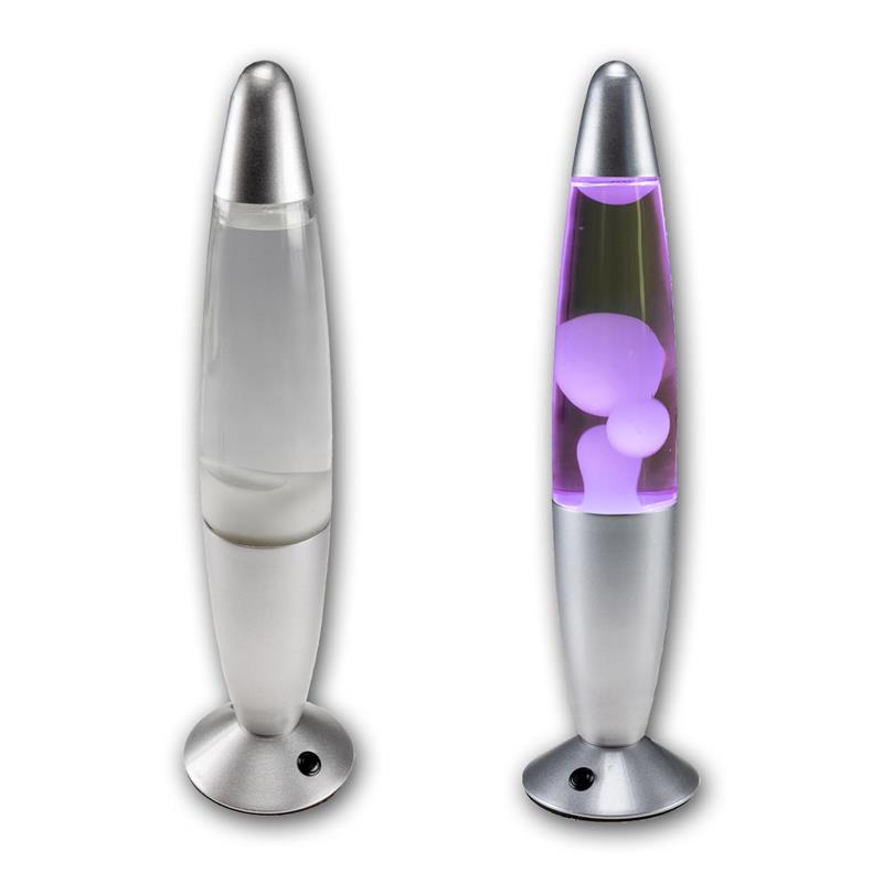 Lavalampe mit RGB Farbwechsel + 6 Einzelfarben, Wachsbewegungseffekt durch natürliche Wärmezirkulation, Fuß & Kappe silber