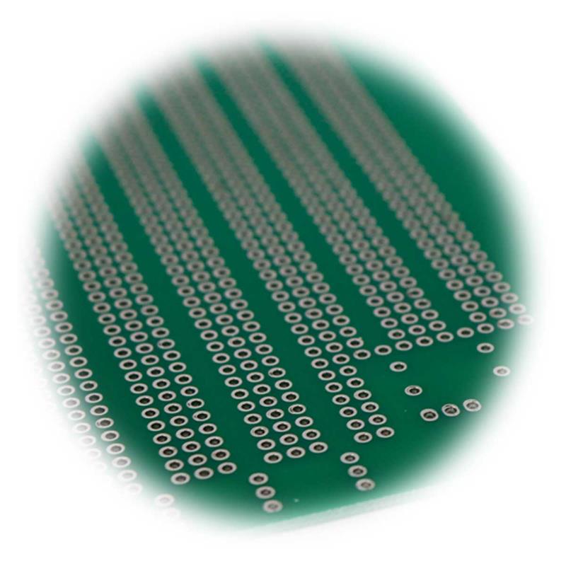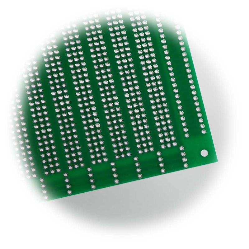 Maße 227x148mm, 2834 Kontakte, doppelseitig kupferkaschiert, Rastermaß 2,5mm, aus robustem Epoxidharz, Lötpunkte nicht verbunden