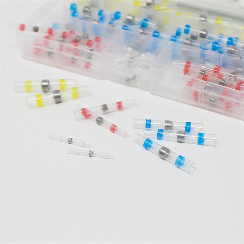 120-teiliges Set Lötstoßverbinder, heißschmelzender Innenkleber, Ringfarben: weiß, rot, blau, gelb, inkl. PE-Aufbewahrungsbox