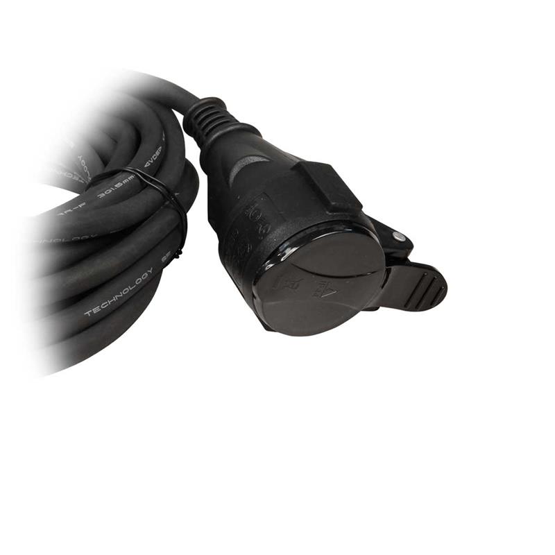 Verlängerungskabel, IP44 (spritzwassergeschützt), H05RR-F 3G1.5, 3x1,5mm² Querschnitt, mit Schutzkappe, schwarz