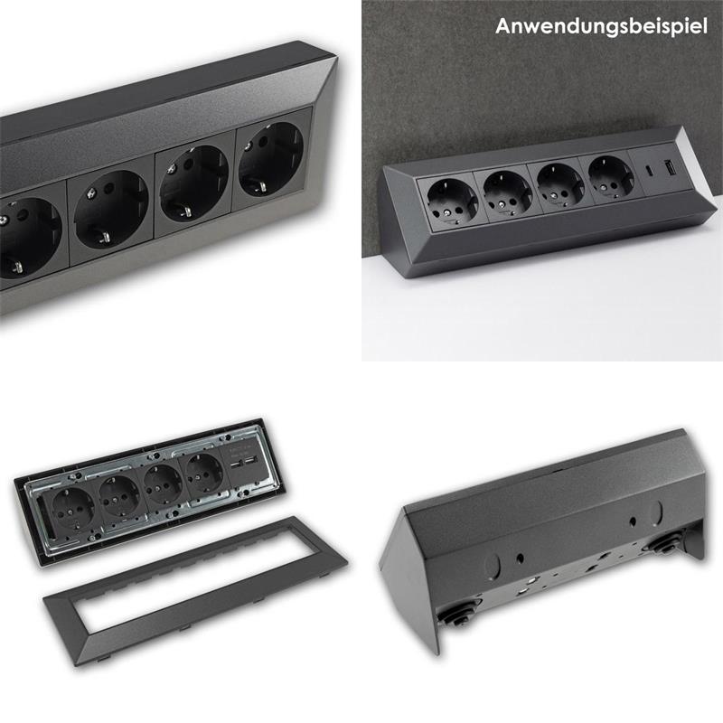- 1x Aufbau Steckdosenblock, 4-fach + 2x USB, anthrazit oder