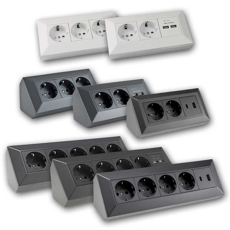 Aufbausteckdose in weiß oder anthrazit, Steckdosenblock mit USB-A und USB-C, zur horizontalen oder vertikalen Aufbaumontage, Maximalleistung 3600W