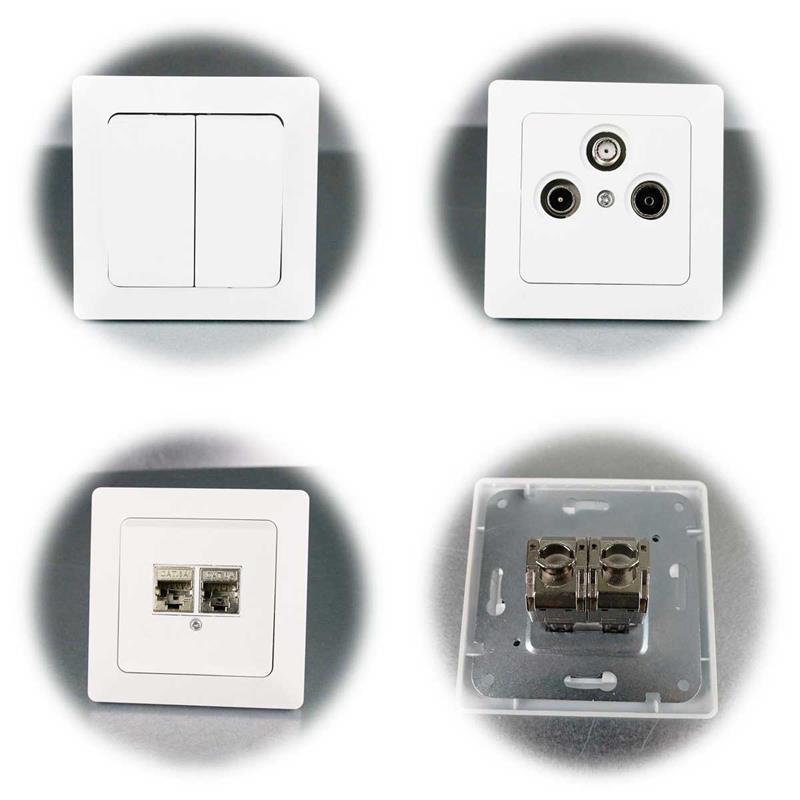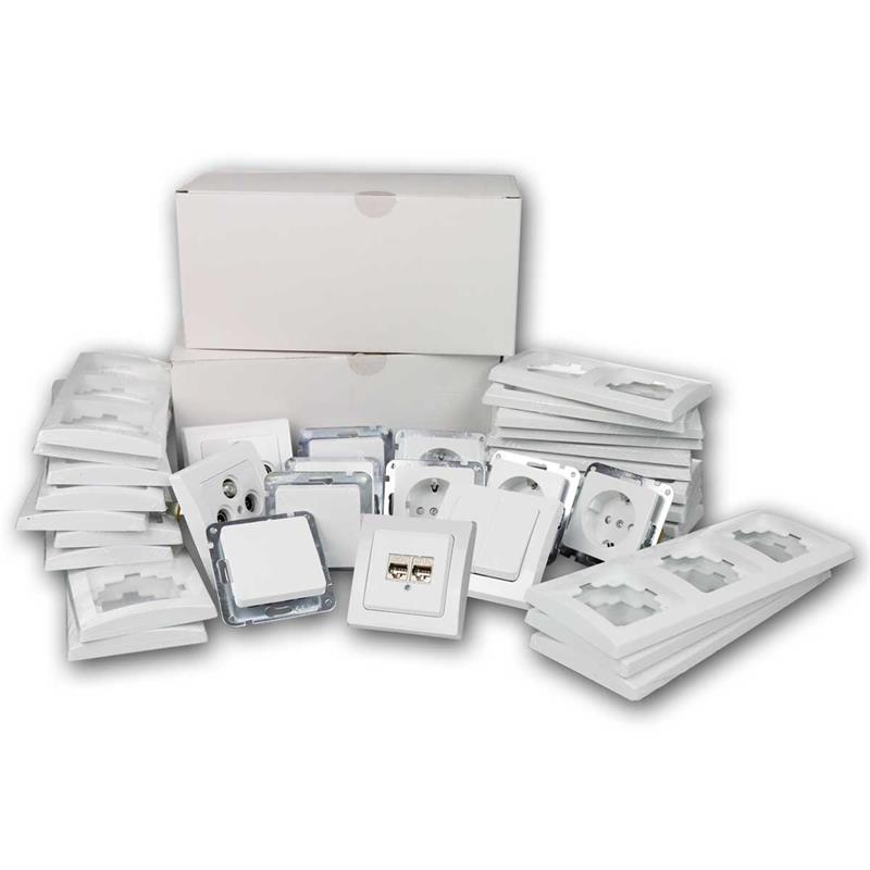94-teiliges Komplett-Set "Einfamilienhaus" in weiß ist mit weiteren Komponenten von "MILOS" kompatibel, mit Befestigungskrallen für UP-Gerätedosen