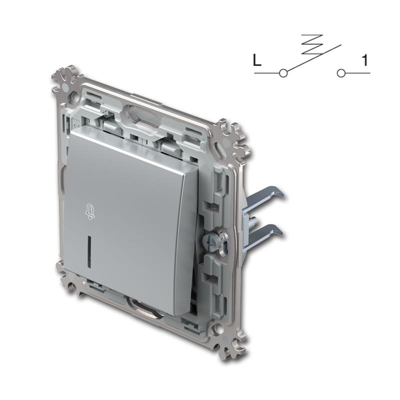 Klingeltaster beleuchtet, für den Einbau in UP-Gerätedosen, kompatibel mit Rahmen aus der Serie "MODUL PLUS", silber