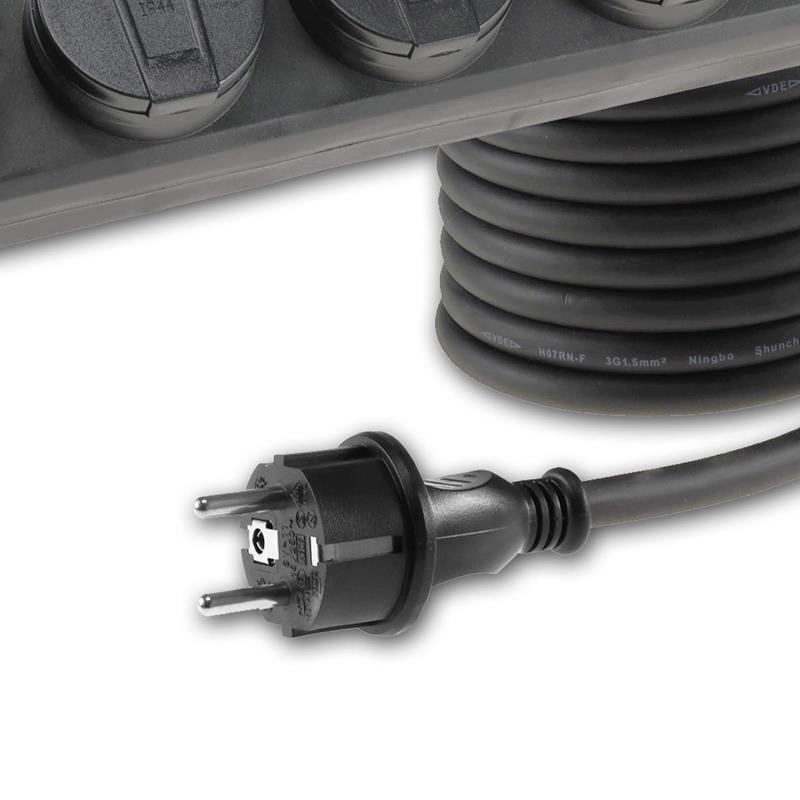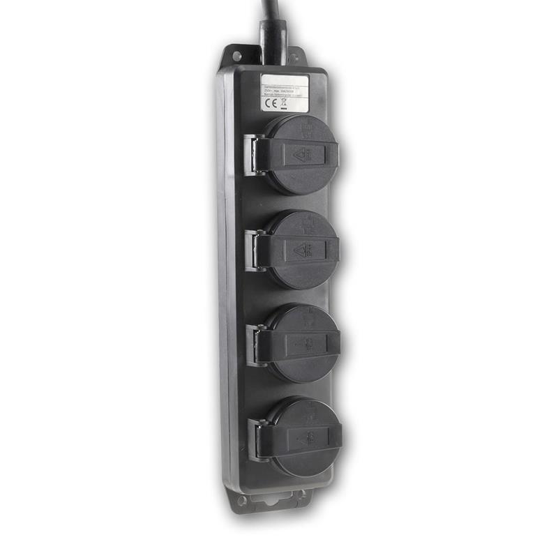 4-fach Steckdosenleiste witterungsbeständig, Steckdosen mit selbstschließenden Deckeln, Gummi-Anschlusskabel mit Schutzkontaktstecker