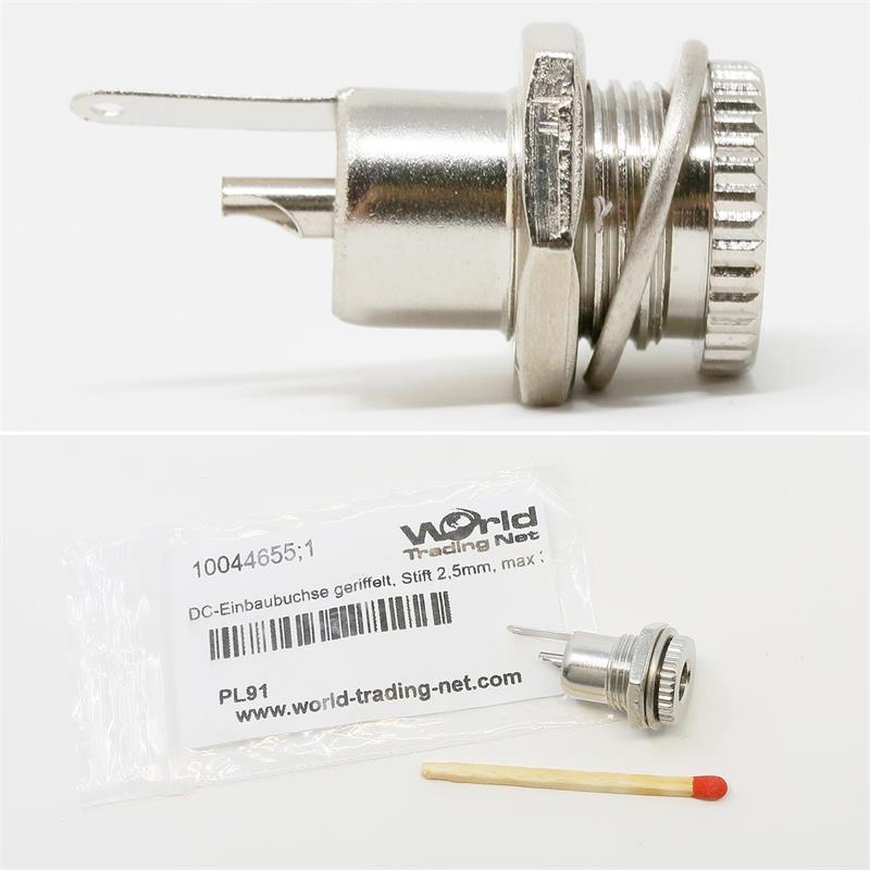 - 1x / 3x / 5x DC-Einbaubuchse geriffelt, Stift 2,5mm, max. 30V/5A