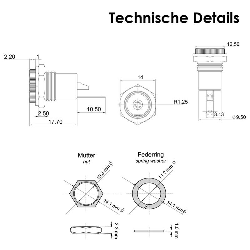 - Einbaudurchmesser: ca. 11mm