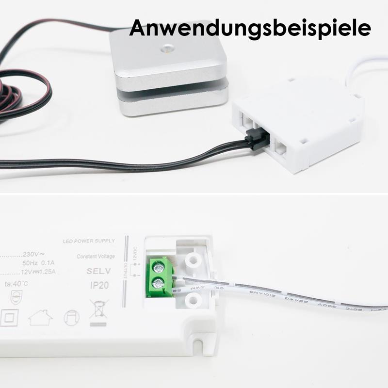 Mini AMP Verteiler mit Anschlusskabel, verschiedene Anschlussmöglichkeiten, max. 24V DC, lösbare Verbindung für LED Beleuchtung, weiß oder schwarz