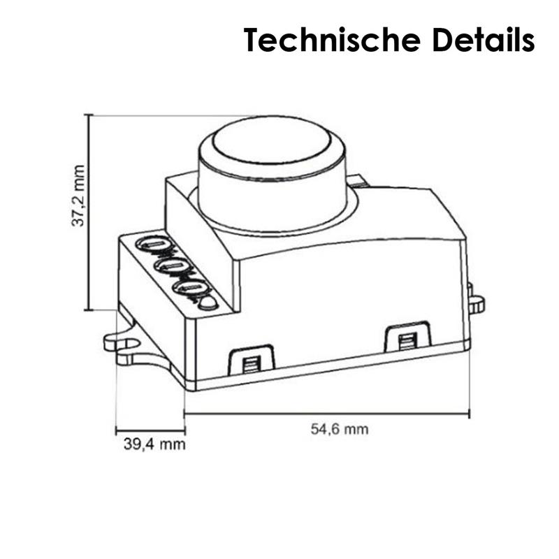 Der Mikrowellen-Bewegungsmelder „OR-CR-281“ vereint moderne Sensortechnologie mit ultrakompakter Bauweise – ideal für anspruchsvolle Lichtsteuerungs- und Automatisierungslösungen im Innenbereich. Mit seinen besonders kleinen Abmessungen fügt sich der Sensor dezent in jede Umgebung ein, ohne optisch aufzufallen. Trotz seiner Größe bietet er eine beeindruckende Leistung: Ausgestattet mit einem hochfrequenten 5,8-GHz-Hochfrequenzsensor erkennt der Bewegungsmelder Bewegungen zuverlässig im gesamten Raum dank eines weiten 360° Abtastwinkels sowie eines horizontalen 180° Erfassungswinkels. Die maximale Reichweite beträgt sowohl frontal als auch seitlich bis zu 8 Meter, wodurch ein großer Bereich lückenlos überwacht wird. Dabei erfasst der Sensor Bewegungen mit Geschwindigkeiten zwischen 0,6 und 1,5 Metern pro Sekunde präzise und schnell. Die Schaltzeit lässt sich flexibel zwischen 10 Sekunden und 12 Minuten einstellen, was eine individuelle Anpassung an verschiedenste Anwendungsbedürfnisse ermöglicht. Ebenso variabel ist die Empfindlichkeit, die im Bereich von etwa 3 bis 2000 Lux regulierbar ist – so arbeitet der Sensor nur bei den gewünschten Lichtverhältnissen und sorgt so für energieeffiziente Steuerung.