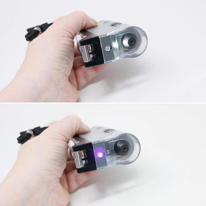Mikroskop mit LED- und UV-Beleuchtung, integrierter Objektträger, 100 bis 250-fache Vergrößerung, Stromversorgung 1x Mignon AA Batterie, Smartphone kompatibel