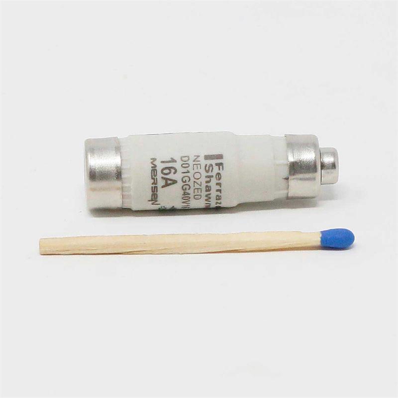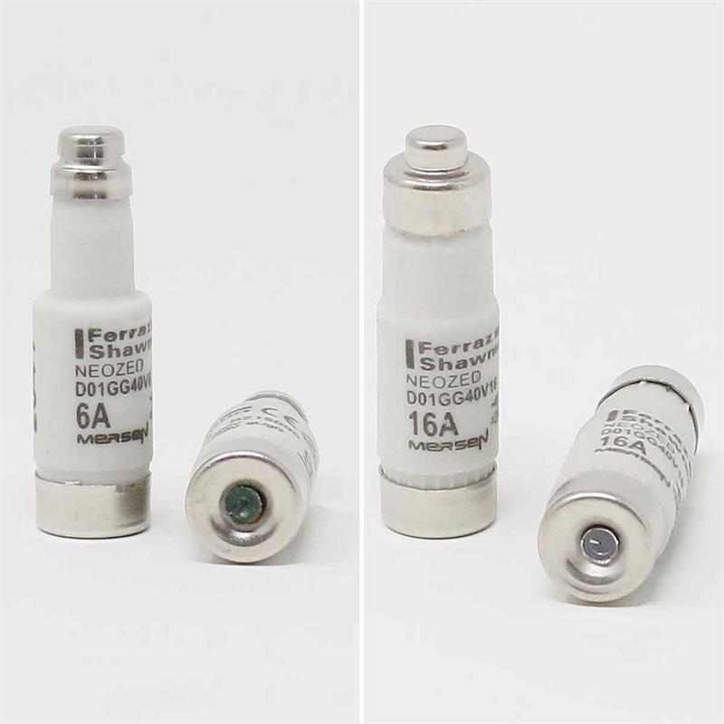 Die Neozed-Sicherungseinsätze der Baugröße D01 bieten einen zuverlässigen Schutz für Elektroinstallations-, Signal- und Steuerstromkreise gegen Überlast- und Kurzschlussströme. Sie sind so dimensioniert, dass sie den Anforderungen von VDE und IEC entsprechen und daher als gL-gG gekennzeichnet sind. Die Schmelzsicherungen D01 sind für Nennströme von 2 bis 16 Ampere ausgelegt und können bei Verwendung einer speziellen Haltefeder auch in D02-Sicherungssockeln verwendet werden. Das D0-System wird häufig in Wohnungen, Geschäftsräumen und ähnlichen Gebäuden eingesetzt.