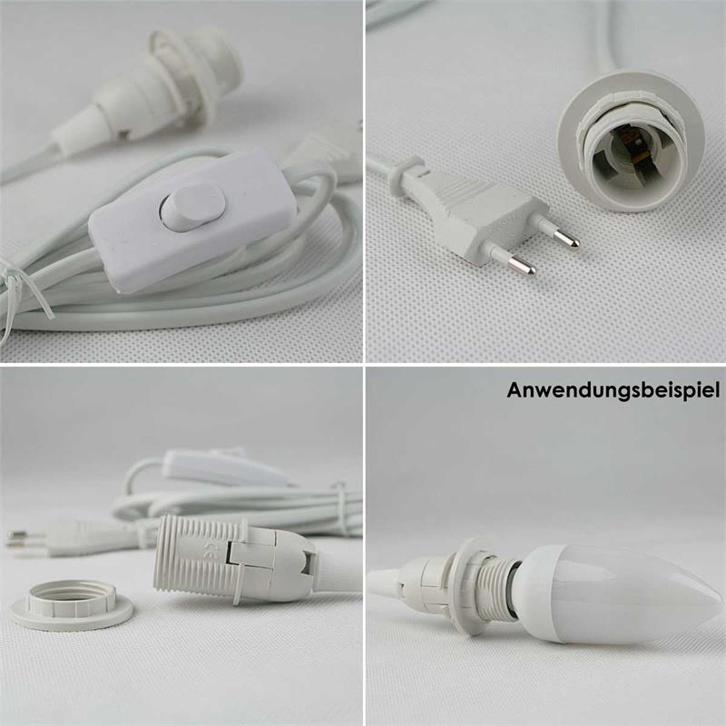 - 1x Netzkabel mit Schalter und E14 Fassung, weiß oder