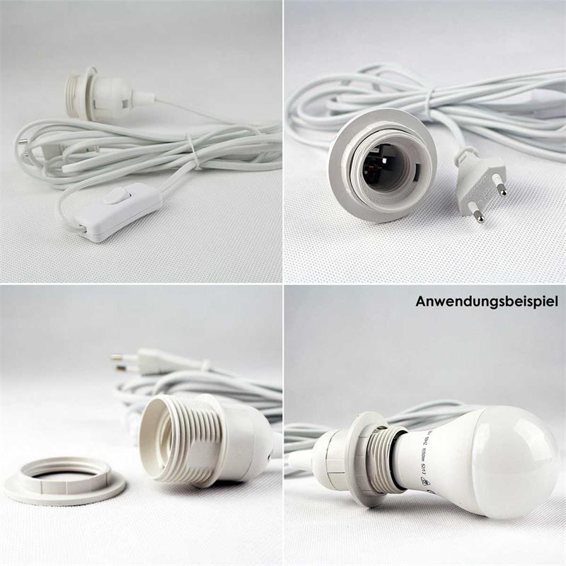 - 1x Netzkabel mit Schalter und E27 Fassung, weiß oder