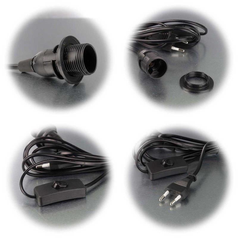 - 1x Netzkabel mit Schalter und E27 Fassung, schwarz