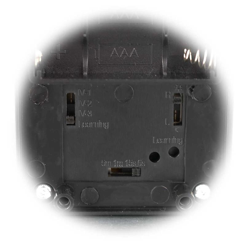 - Empfindlichkeit einstellbar ("H": 24h aktiv, "L": nur bei Dunkelheit)