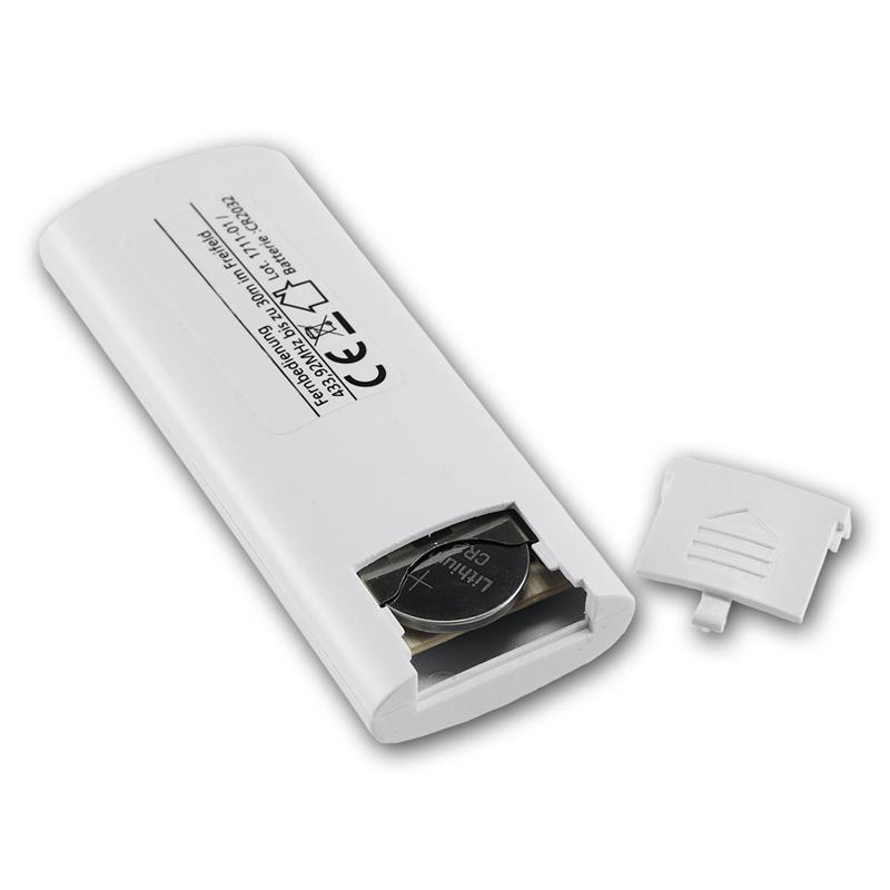 - Stromversorgung Fernbedienung: 1x Knopfzelle CR2032 (nicht im Lieferumfang)