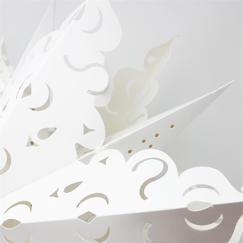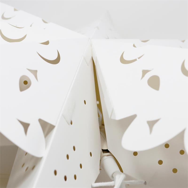 Der Papierstern „HEAVEN“ in edlem Creme verleiht jedem Raum eine festliche und zugleich stilvolle Atmosphäre. Mit einem Durchmesser von ca. 60cm und seinen 14 kunstvoll gestalteten Zacken wird er zum dekorativen Highlight in der Advents- und Weihnachtszeit. Besonders die filigranen Ausstanzungen sorgen dafür, dass das Licht sanft nach außen strahlt und ein stimmungsvolles Muster an Wänden und Decke entstehen lässt. Dank des praktischen Zugbands mit Fixieröse sowie Klettverschlüssen lässt sich der Faltstern einfach entfalten und sicher befestigen. Das ca. 3,5m lange Anschlusskabel mit verschiebbarer Aufhängeöse bietet genügend Flexibilität für die Platzierung im Innenbereich. Der Papierstern ist mit einer E14 Fassung (bis max. 15W) ausgestattet und kann wahlweise ohne oder direkt mit passendem LED Leuchtmittel bestellt werden.