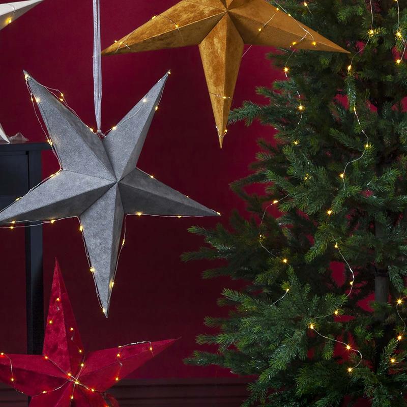Besonders reizvoll ist die Auswahl an Farben, die dem Stern ganz unterschiedliche Charaktere verleiht: In grau wirkt er modern und zurückhaltend, in gold strahlt er festliche Eleganz aus und in rot verleiht er jedem Raum eine warme, traditionelle Note. Ganz gleich, ob einzeln als Highlight oder in Kombination mehrerer Farbtöne – der LED Stern sorgt für ein stilvolles Lichtambiente zu Weihnachten, bei Feierlichkeiten oder als liebevolle Dekoration im Kinderzimmer. Für den Betrieb werden drei AA Batterien benötigt, die nicht im Lieferumfang enthalten sind. Mit dem LED Samt-Papierstern „VELVET“ gelingt es mühelos, jedem Raum einen Hauch festlicher Gemütlichkeit und eleganten Glanz zu verleihen.