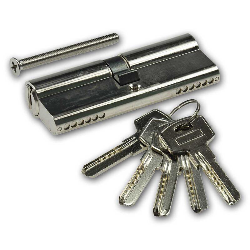 Profil-Sicherheits-Schließzylinder mit Not- & Gefahrenfunktion, Länge 80mm (40+40mm), inkl. 5 Schlüssel mit Muldenbohrungen, für DIN Einsteckschlösser