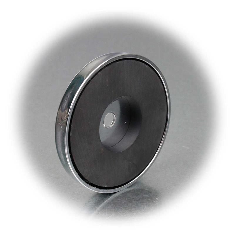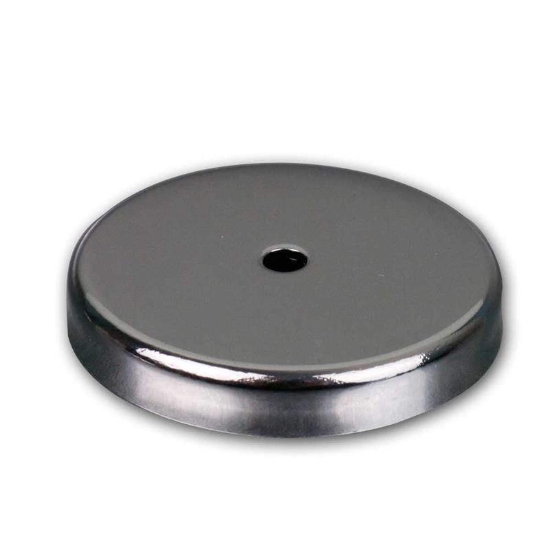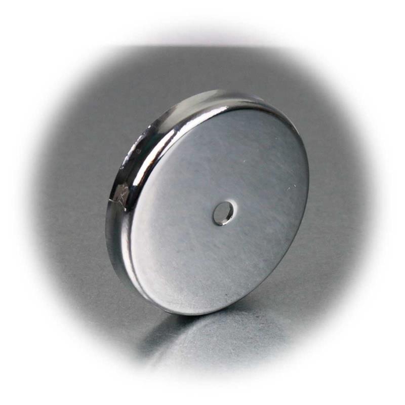 Rundmagnet mit Chromabdeckung, Haftkraft: bis 11kg, Maße (mit Chromabdeckung): ca. 51x8mm (ØxH), Ø Mittelloch in Abdeckung: 5mm
