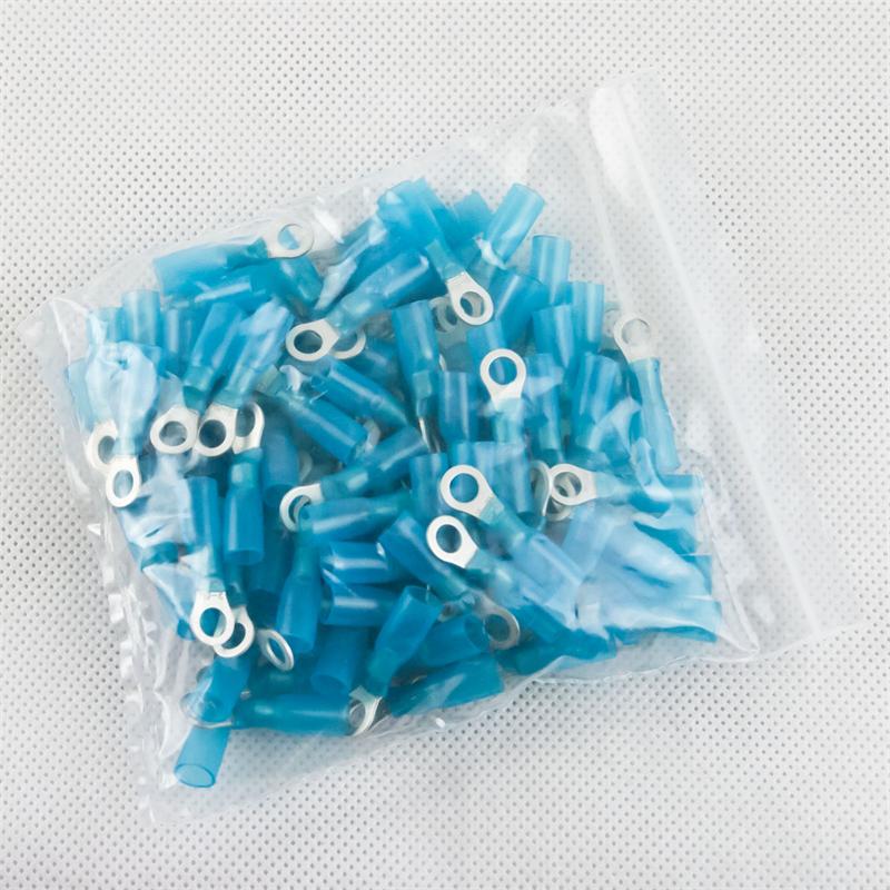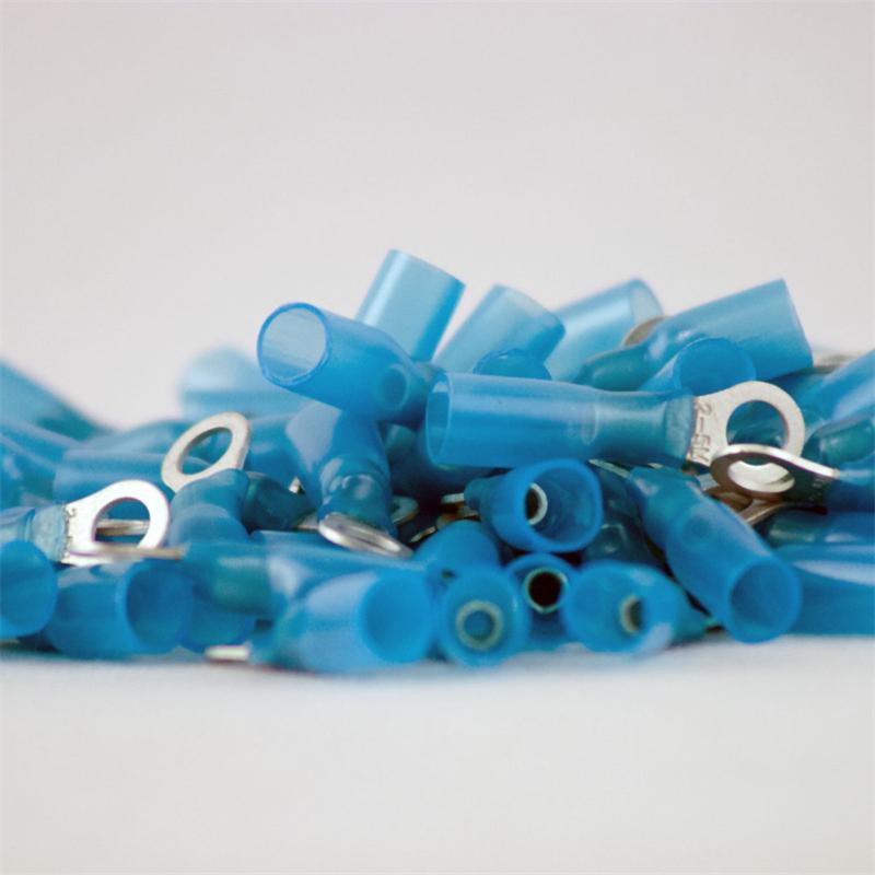 100 Schrumpf-Ringkabelschuhe, mit Innenkleber - AWG 16-14 - für Kabelnennquerschnitte von 1,5-2,5mm², M5 Blau