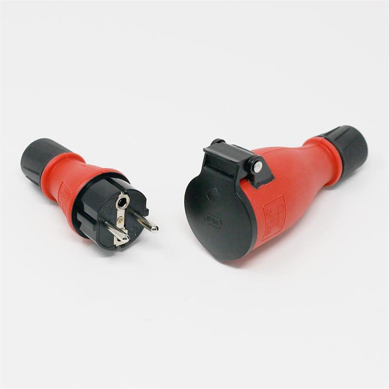 - 1x Schutzkontakt-Stecker IP54, schwarz/rot 250V/16A oder